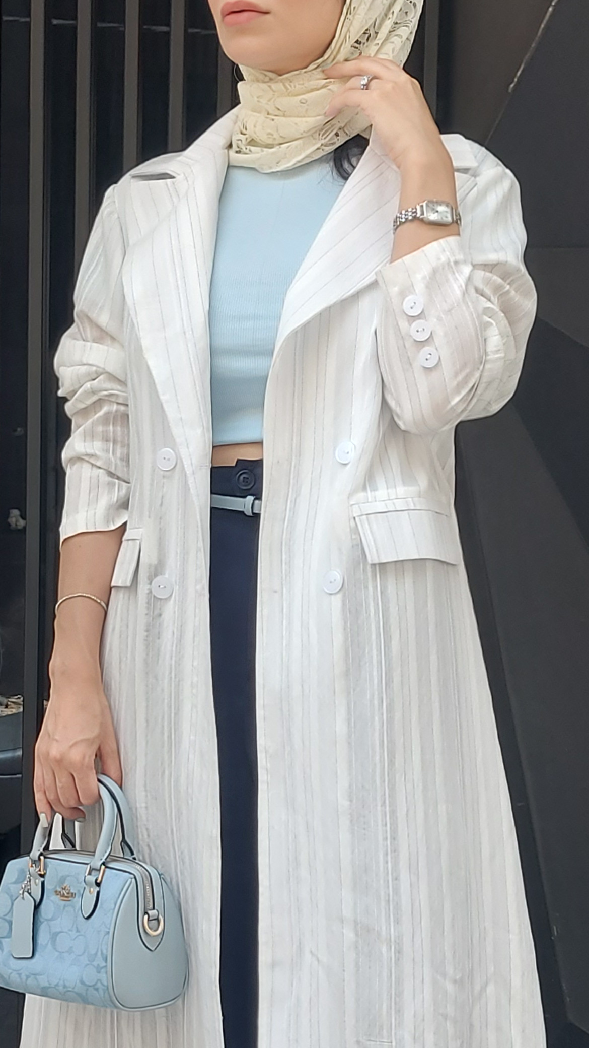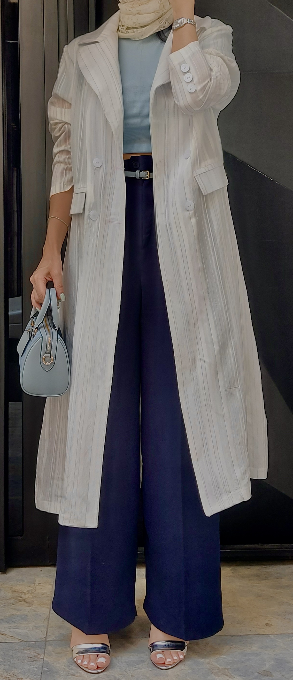 جنس پارچه نخ باکیفیت مناسب بهار و تابستان پشت مانتو چاک دارد دکمه به صورت چهار دکمه بسته هم میشود